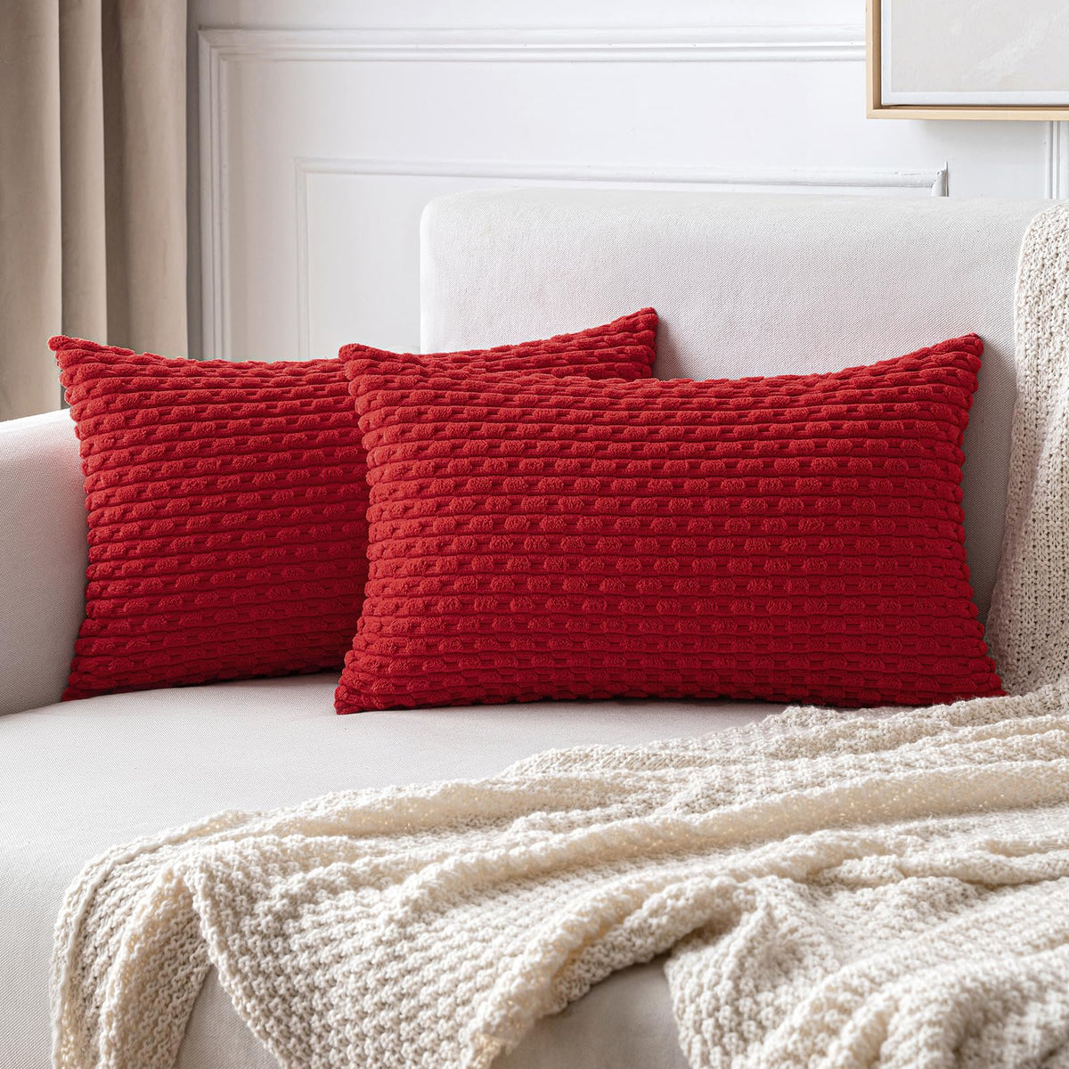 MIULEE Rust Throw Pillow Covers Soft Corduroy Decorative Set of 2